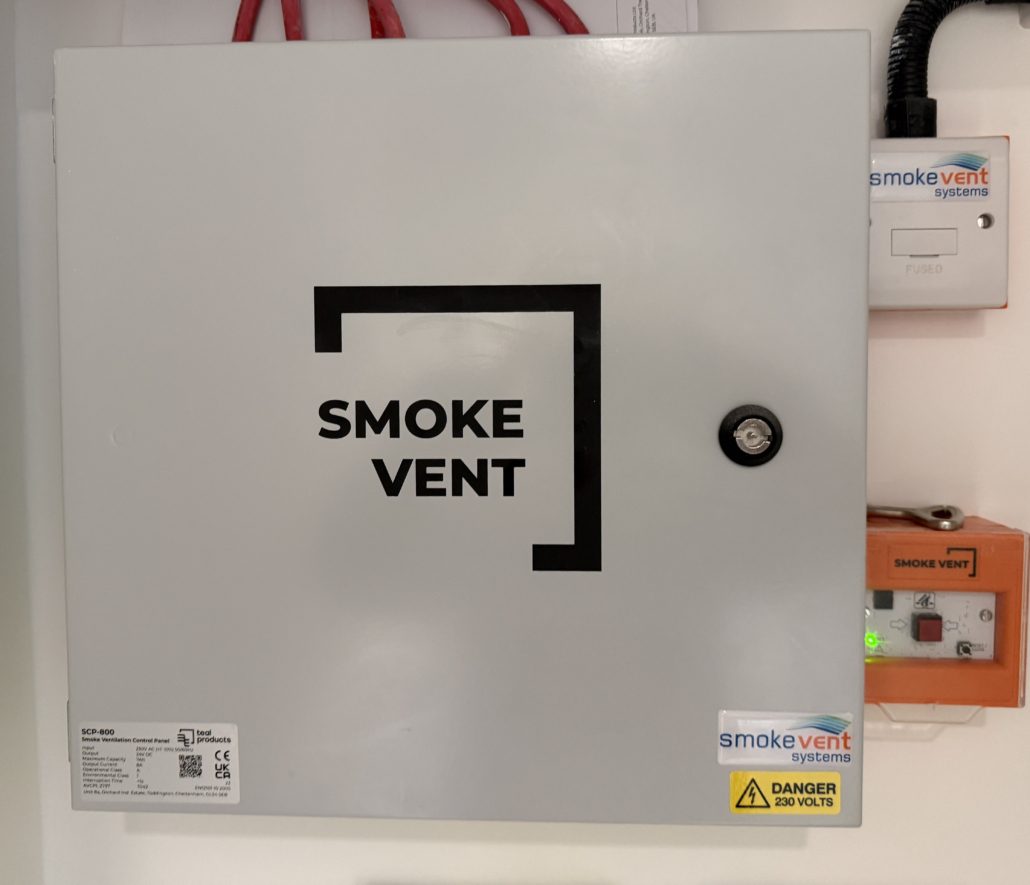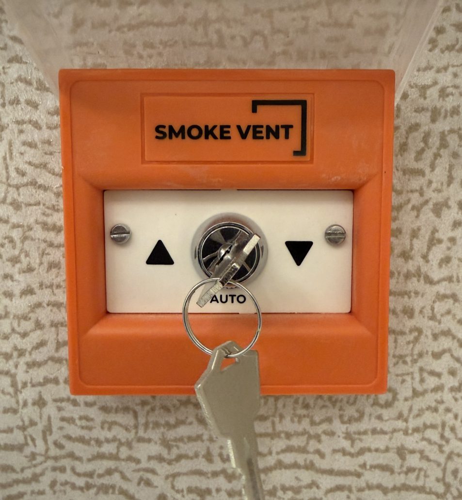 Our client on this small single-zone stairwell system was an architect who required a smoke ventilation lantern to meet the planning restrictions on this listed building. The small lantern required four bottom-hung opening leafs to achieve the required free area. Design brief was to include daily ventilation controlled by thermostat and wind/rain sensor with opening leafs set to open a reduced amount. Lantern was installed in one day and controls and commissioning completed in one day.