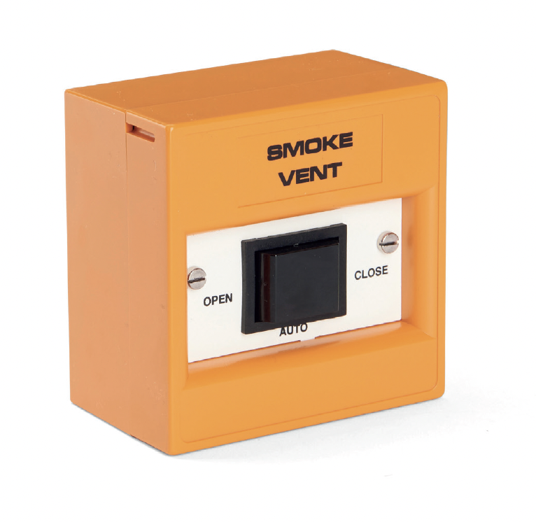 Smoke Vent Systems can offer these three way override rocker switches (FOS). These are Fire Service override switches which are used to open and close smoke systems, and can be used alongside our smoke control panels. This unit is available finished in a choice of orange and comes supplied with a back box for surface mounting.